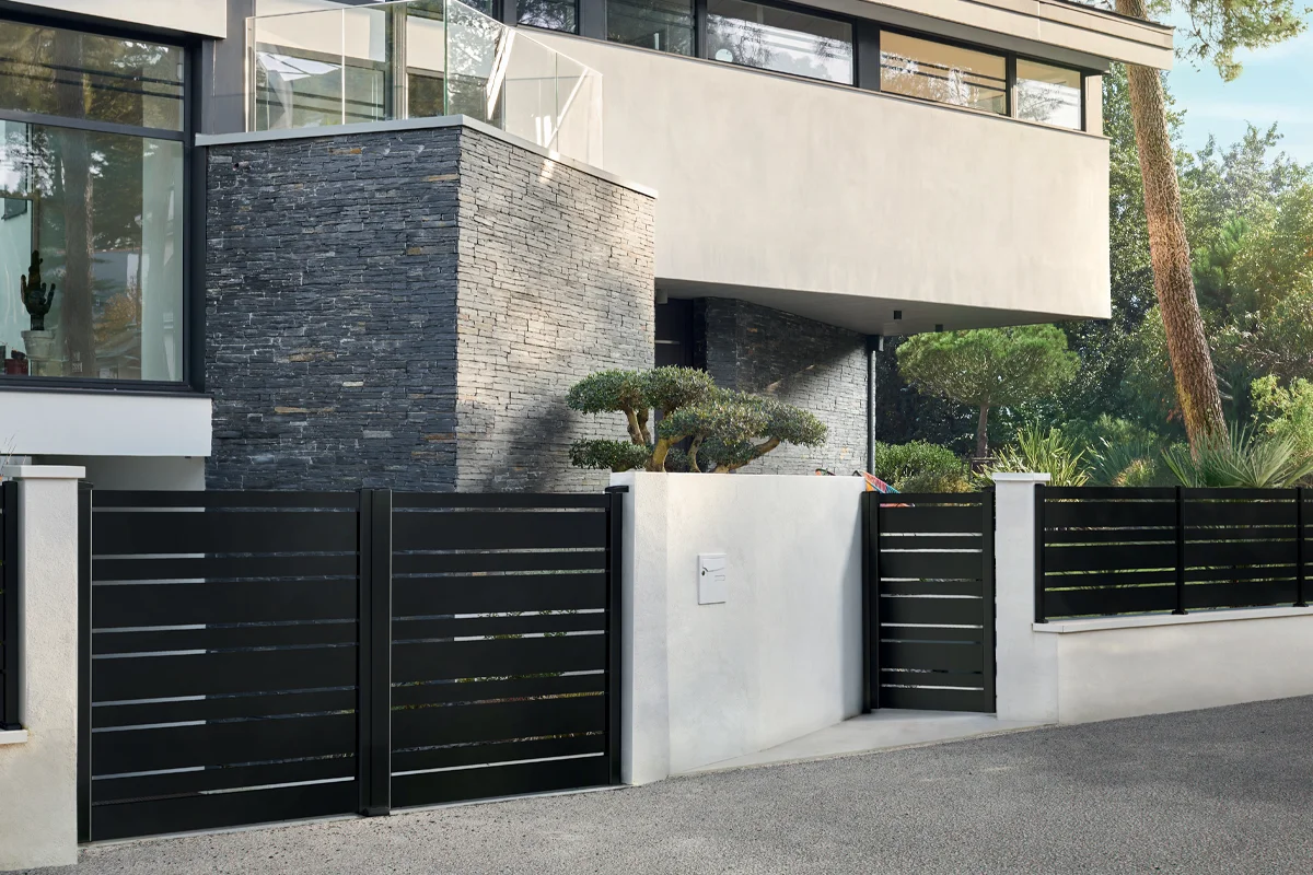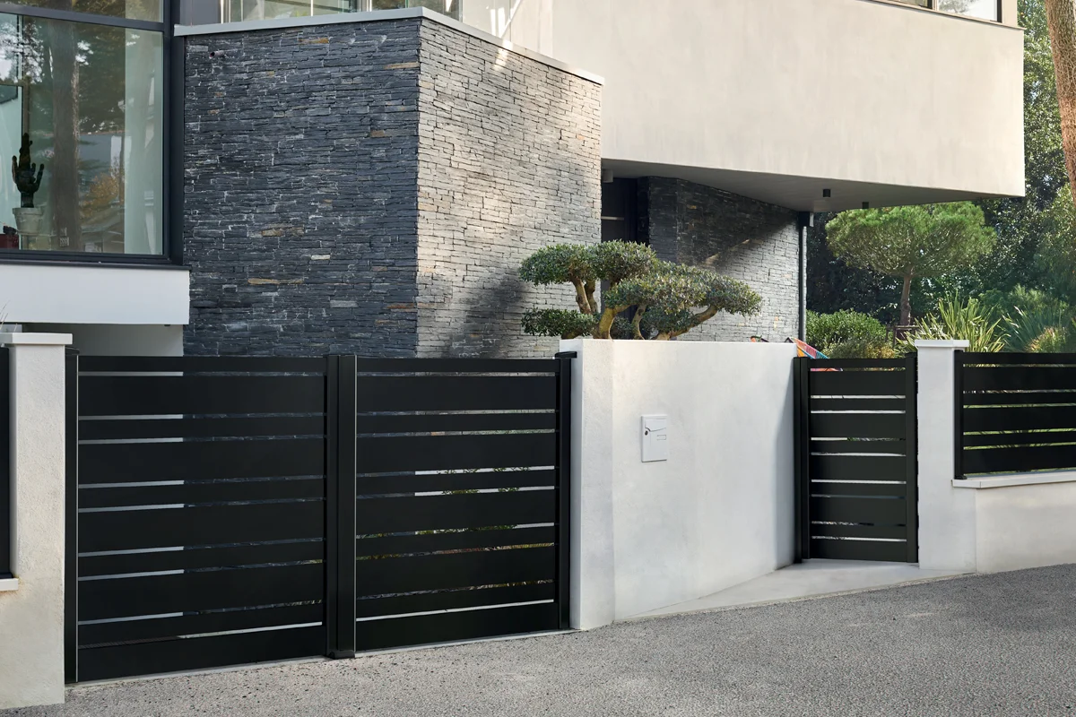 Même design, même qualité, même exigence : nos clôtures reprennent la même approche et les mêmes lignes que nos portails aluminium. Histoire que tout soit raccord, du premier poteau jusqu’au dernier vantail.