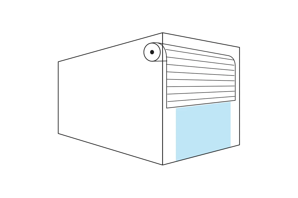 Compacte et discrète, elle s'ouvre la verticale dans un coffret au dessus de l'ouverture pour faire place nette.