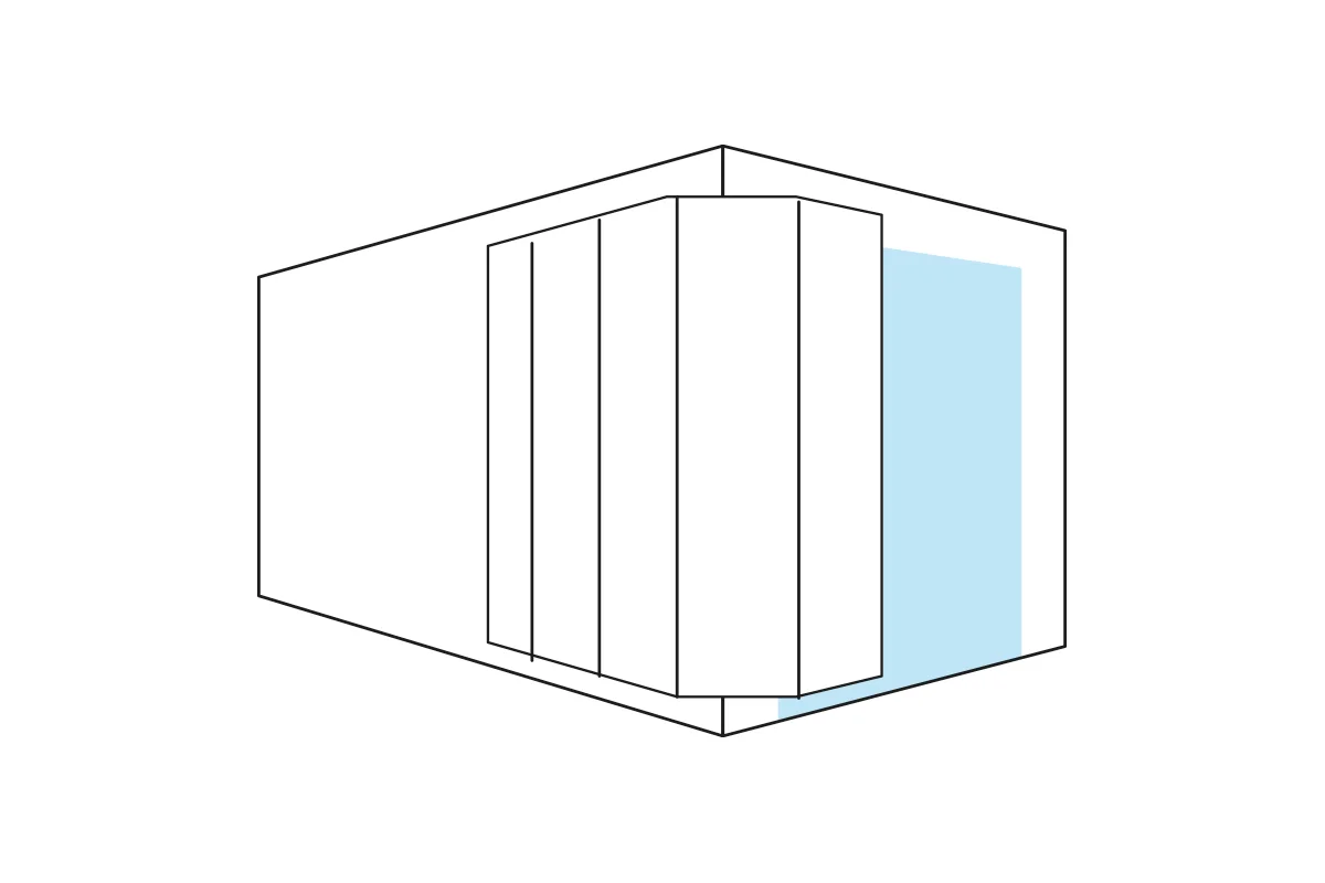 Quand le plafond est trop bas, elle coulisse contre un mur et libère la place sans empiéter sur le passage.